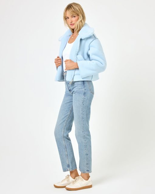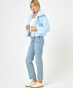 She’s REVERSIBLE! The Kalina Jacket is doing the girl math thing in all the right ways. Slip into the sherpa suede side facing out and then flip her around for a luxurious feeling faux fur sherpa on the outside. Our gorgeous ice blue color will have you snuggling up in this cozy little number. Sherpa Suede Pockets At Hip Collared Reversible Zip Up 100% Polyester Faux Fur Style # KAIJA25
