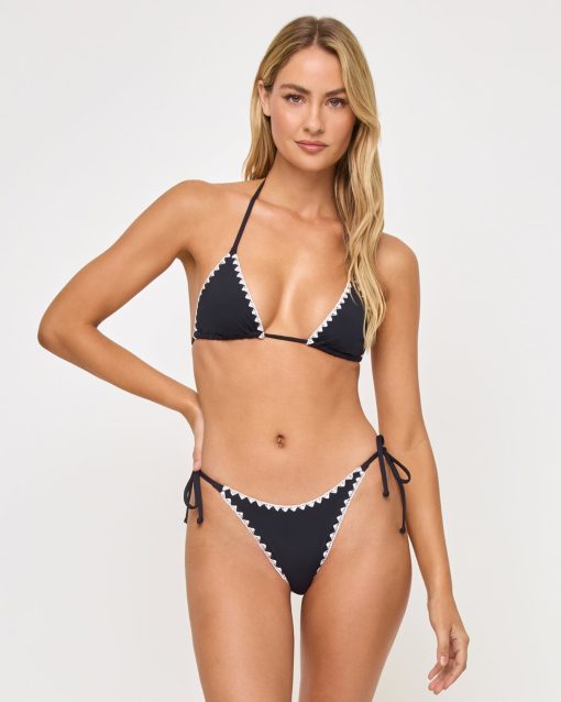 Mediterranean charm meets California cool with the sought-after LSPACE x Rails collab! The Zahra Bottoms will elevate your beach look thanks to its detailed blanket stitching, tie sides, mide rise and classic coverage. The black and cream colorway levels up the sophistication factor. Mid Rise Tie Side Classic Coverage Blanket Stitch