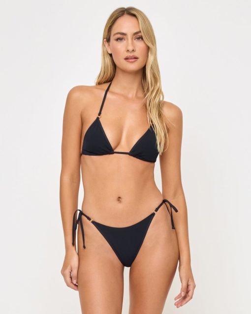 The Banning is our updated take on the celebrated triangle top. This bikini features refined gold hardware and adjustable ties at the neck and back for a completely customized fit. Choose from four gorg colors to suit whatever mood you’re in that day. Triangle Top Fully Adjustable Metal Ring Detail Ribbed Size XS-XL 92% Nylon, 8% Spandex Style # RHBNT25