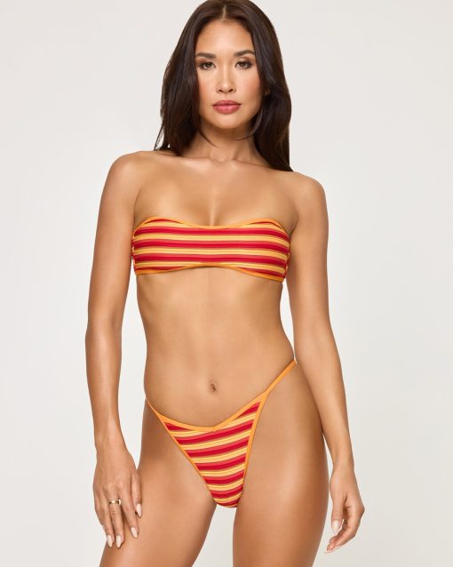 The Banning is our updated take on the celebrated triangle top. This bikini features refined gold hardware and adjustable ties at the neck and back for a completely customized fit. Choose from four gorg colors to suit whatever mood you’re in that day. Colorblock binding Bandeau 3 point adjuster at back Removable Straps Novelty texture fabric Adjustable straps Size XS-XL 92% Polyester, 8% Spandex Style # TSBKT25