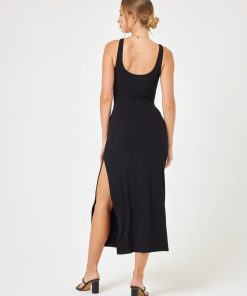 There’s nothing like a fitted ribbed dress to elevate any occasion. The Camille Dress is infused with fun details like loop cutouts, a scoop neck, side slit and thick straps. Find her in three neutral hues. Fitted Ankle Length Skirt Scoop Neckline Thick Straps Loop Cutout Detail At Waist Love Forever Rib Size XS-XL 92% Viscose 8% Elastane Like all delicates, shape, color and fit are best preserved if hand washed in cold water. Lay flat to dry. Style # CMLDR24