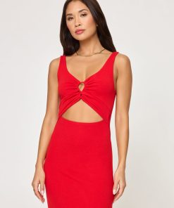 There’s nothing like a fitted ribbed dress to elevate any occasion. The Camille Dress is infused with fun details like loop cutouts, a scoop neck, side slit and thick straps. Find her in three neutral hues. Fitted Ankle Length Skirt Scoop Neckline Thick Straps Loop Cutout Detail At Waist Love Forever Rib Size XS-XL 92% Viscose 8% Elastane Style # CMLDR24