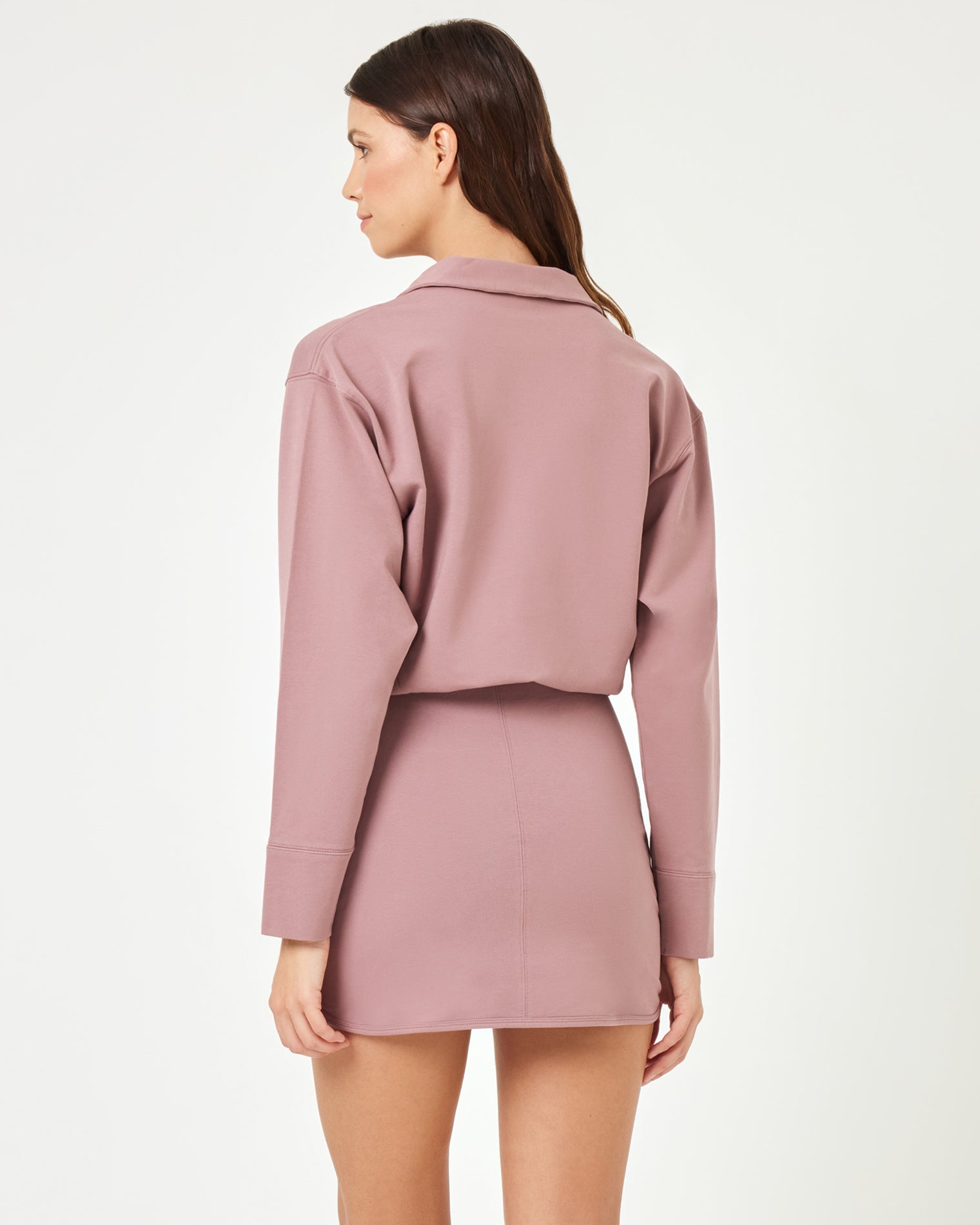 The Carson Dress is a no-brainer since you’re basically getting two looks in one. With long sleeves and a varsity collar on top and a fitted mini length on the bottom, this is the one to grab when you just can’t figure out what to wear. Active Dress Size XS-XL 95% Cotton 5% Elastane Style #ACARDR25