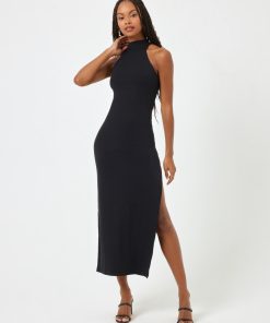 The Cherie is not your average ribbed dress. We maximized the style with this ankle-length midi and included a polished mock neck, sleeveless silhouette and perfectly-placed slit at the thigh. Mockneck Sleeveless Ribbed Ankle Length Dress Slit At Thigh 92% Viscose 8% Elastane Like all delicates, shape, color and fit are best preserved if hand washed in cold water. Lay flat to dry. Style # CHEDR24
