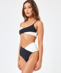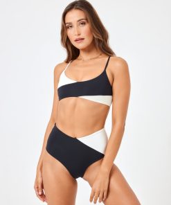 Elongate your frame in the high-waisted High Tide Bikini Bottom. A v-front and classic coverage combine for a suit that is as classy as you are. Contrasting cream + black fabric give it that extra edge, too. High Waist Bottom Classic Coverage V Front Size XS-XL 80% NYLON, 20% SPANDEX Unsure of your size? No worries! We recommend sizing up in our swim to get that perfect, feel-good fit. Style # CBHTC23