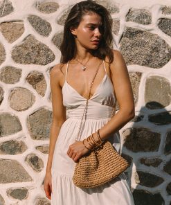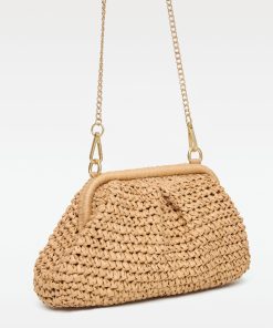 A thin and gorgeous metal chain combines with delicate woven paper raffia to create the Harmony Bag. This pouch is also a two-for-one: wear it over the shoulder or tuck the strap inside to create a clutch — perfect for weddings or other more formal events. Paper raffia magnetic closure metal strap Material: 100% Paper Style #LSMEN25