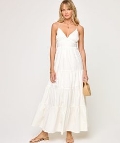 The Laina is a maxi that just hits different. From its generous tiered skirt to adjustable straps that criss-cross in the back, you’ll always feel your best in this cotton poplin number. Spaghetti strap Criss cross back Adjustable tie at back Tiered dress V neck Cotton Poplin 100% Cotton Style # LAIDR25