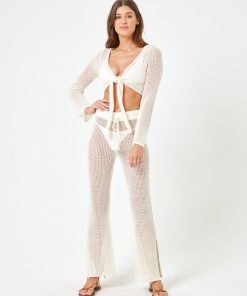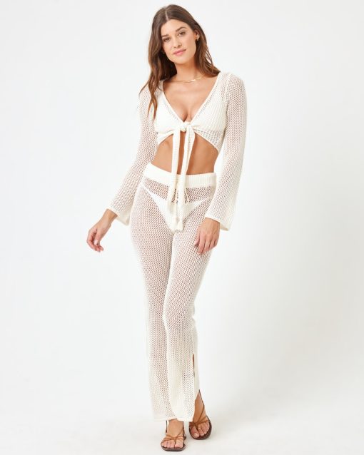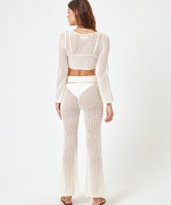 Look oh so cool in some crochet. The Los Cabos Pant is an effortless pick that you can slip on over your favorite swim look. Wear it with a bikini on top or the matching long sleeves crop for a matching set moment. Crochet Knit High Waist Pant Drawstring Waist Size XS-XL 100% Cotton Like all delicates, shape, color and fit are best preserved if hand washed in cold water. Lay flat to dry. Style # LOSPT24