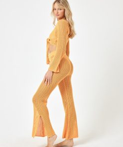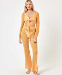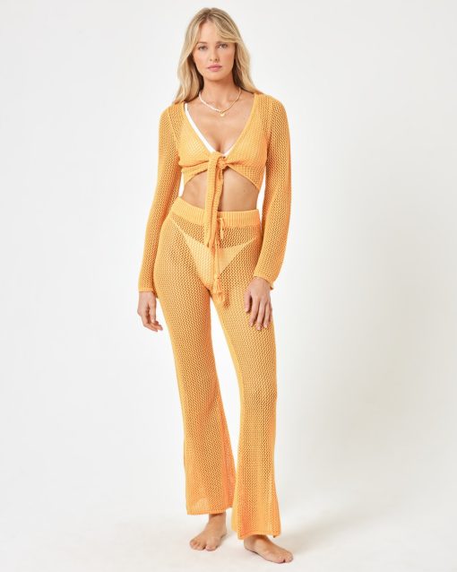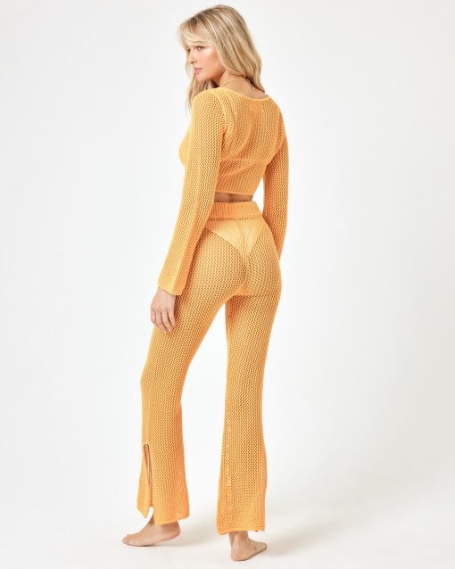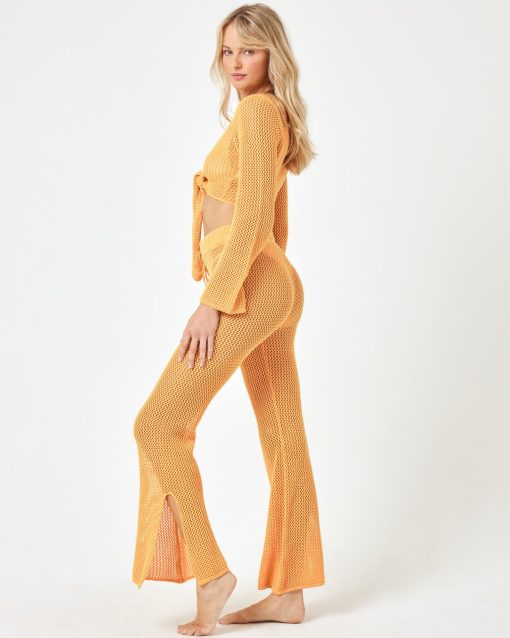 Look oh so cool in some crochet. The Los Cabos Pant is an effortless pick that you can slip on over your favorite swim look. Wear it with a bikini on top or the matching long sleeves crop for a matching set moment. Crochet Knit High Waist Pant Drawstring Waist Size XS-XL 100% Cotton Like all delicates, shape, color and fit are best preserved if hand washed in cold water. Lay flat to dry. Style # LOSPT24