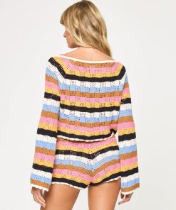 Is it possible to have too many matching crochet sets? Asking for a friend. The Lost Tides Top is a gorgeous statement piece complete with long bell sleeves, a square neckline and scalloped hem. Pair this colorful crop with the complementary shorts for a pulled-together look that will leave an impression.Long sleeve Bell sleeve Square neckline scallop hem Maldives cotton crochet 100% Cotton
