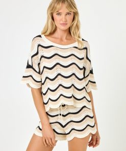 Have fun with playful knits. The Make Waves Top is an over sized boxy top with dropped shoulder and scalloped hem, and is the perfect throw on for any casual activity you’ve got planned.Wide boxy cropped silhouette Scalloped hem Drop shoulder Sweater knit Size XS-XL 100% Cotton Like all delicates, shape, color and fit are best preserved if hand washed in cold water. Lay flat to dry. Style # MAKSW24