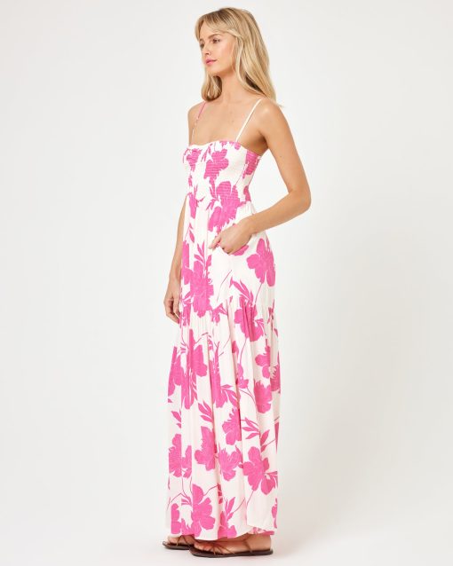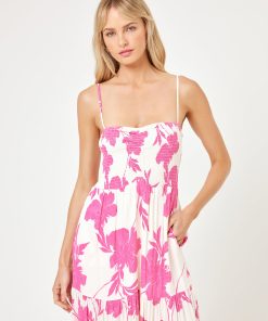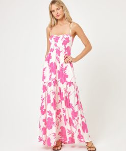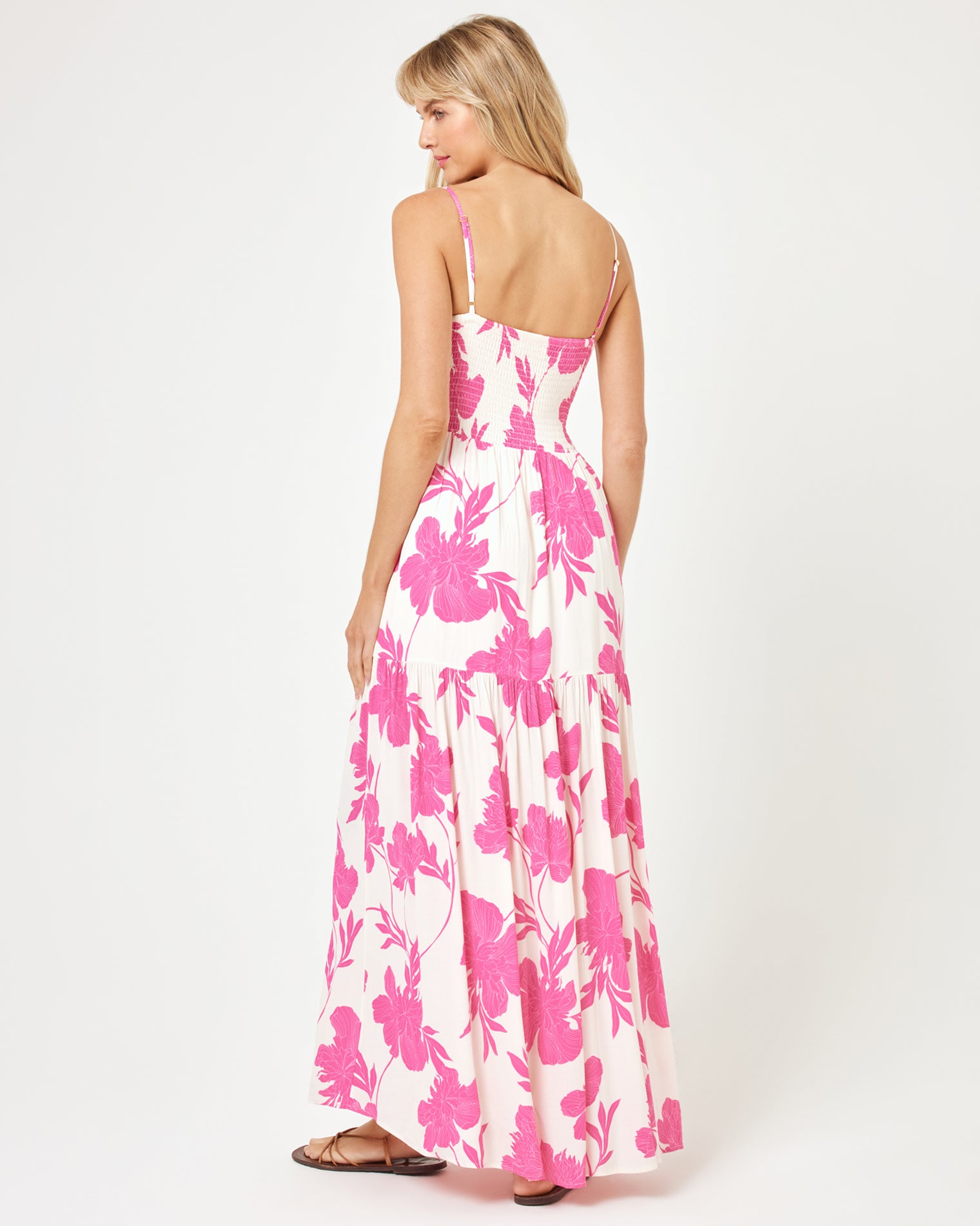 You’re going to look smokin’ hot in this smocked bodice masterpiece. The Mallorca Dress is a maxi that really is doing the most. Thin spaghetti straps and a one-tier skirt let this one move with you wherever the day may take you. We added her to the mix in our bright pink floral print. Full Length Dress Adjustable Straps Smocked Bodice Tiered Skirt Size XS-XL 100% Rayon Style # MLLDR25