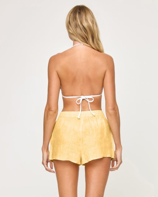 These linen pull-on shorts are the epitome of classic style. An adjustable tie waist and pockets are just a few of the reasons we keep reaching for these closet staples.This style runs small, we recommend sizing up. Linen Pull on Shorts Adjustable Tie Waist Side Pockets 100% Linen Style # RIOSH23
