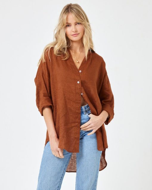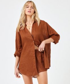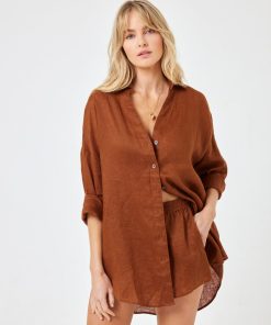 Tailored, refined details pair up with an oversize silhouette to make your new favorite shirt. The Rio Tunic is an essential part of any capsule wardrobe. Wear it as a set with the matching shorts or pop it over your bikini for a quick cover-up. Button Down Collared Shirt Cuffs With Buttons Oversized Relax Fit Size XS/S, M/L, XL 100% Linen Style # RIOTU23