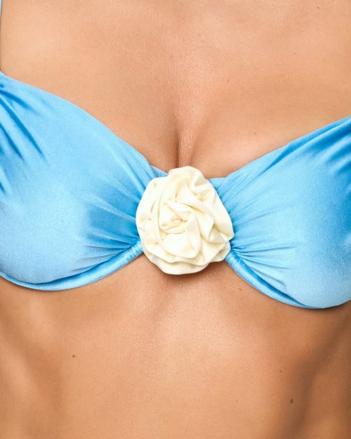 The Stella Bikini Top is nothing short of a stand-out piece. This underwire bralette features extra-thick straps + hooks at the back. We gave this bestseller an upgrade with a rose applique and stunning shine fabric. Underwire Bralette Thick strap Hooks at back Rose applique Shine fabric 80% Nylon, 20% Spandex Like all delicates, shape, color and fit are best preserved if hand washed in cold water. Lay flat to dry. Style # SHSIT24