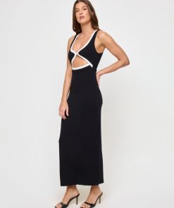 There’s something just oh so sexy about the Steph Dress. This hot midi is bringing the fire with perfectly-placed cutouts under the bust, plunging neckline, contrasting color blocking in black and cream, thick tank straps and our signature ribbed knit fabric that y’all are obsessed with. She’s the perfect pick for vacay, date night and anything in between.Tank straps Cutout under bust Contrast color blocking Ankle length Size XS-XL 90% Viscose 10% Elastane Style # STEDR25