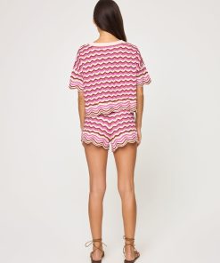 The Sun Chaser Shorts are an effortless pick that look perfect when paired with a bikini top or the matching crop top. The high waist, colorful crochet knit, scalloped hem and drawstring waist will have you reaching for these all the time. High Waist Short Drawstring waist Scalloped hem Shell yeah crochet 100% Cotton Style # SUNSH25