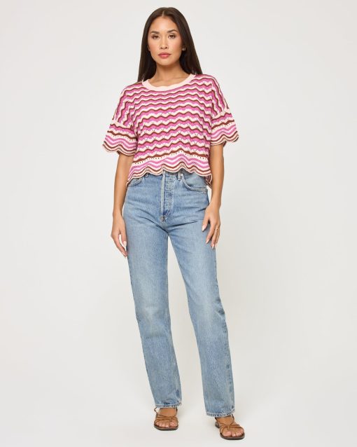 The design team thought of everything when creating the Sun Chaser Top. Scallop Trim? Check. Crochet knit? Check. Gorgeous colors? Check. Pair this cute crop with the matching shorts for a look that’s cute as a cover-up or resortwear. Crop Short sleeve Scalloped hem Shell yeah crochet 100% Cotton Style # SUNSW25