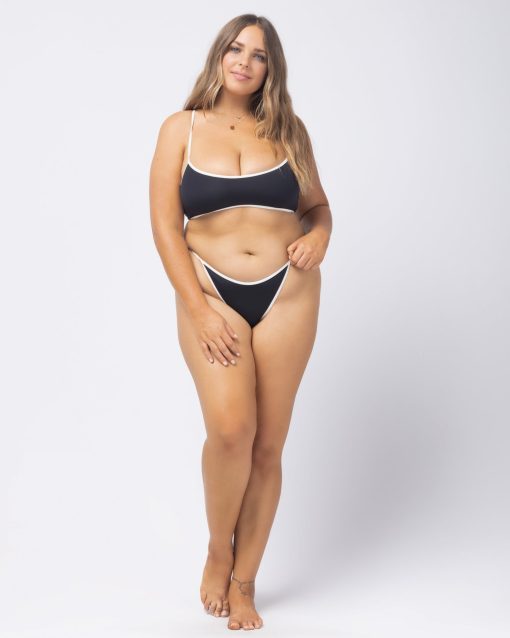 For those times you’re feeling a bit cheeky, the Tommy Bottom is the way to go. With contrast binding at the seams, this bottom with a bitsy fit sits high on the leg and comes with a scoop front. Make it a match with the Pamela Top.Sits high on leg, Scoop front, Contrast binding at seams Size XS-XL 80% NYLON, 20% SPANDEX Like all delicates, shape, color and fit are best preserved if hand washed in cold water. Lay flat to dry. Style # CBTOB22 Model Measurements: Ali, size XL – Height 5’8 ½”, Bust 43″, Waist 35 ½”, Hips 45 ½” Abby, size S – Height 5’8″, Bust 32″, Waist 24″, Hips 34″